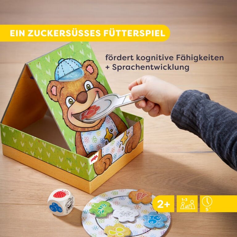 Orsetto Affamato di HABA è pensato per i più piccoli che vogliono esplorare, imparare e divertirsi. L’orsetto ha una fame incredibile e il tuo bambino può aiutarlo a mangiare le palline di porridge, seguendo le indicazioni dei dadi.