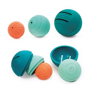 La possibilità di inserire le palline una dentro l'altra sviluppa la coordinazione occhio-mano e la comprensione delle relazioni spaziali.
