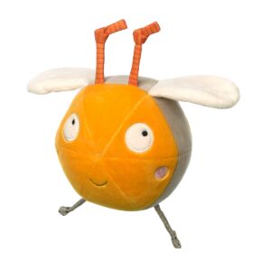 Simpatica e morbidissima pallina ape con tratti del viso ricamati, nastrini tattili, sonaglio e ali fruscianti. Dimensione: 15cm - Età: +3M