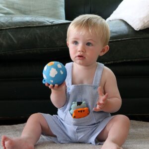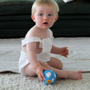 Pallina sensoriale ideale per essere la prima pallina del bambino. Il suo design ha linee eleganti e semplici. La sua consistenza è morbida e il suo suono molto piacevole. Quando la prendi in mano puoi sentire come si muove la campanella all'interno, fornendo una vibrazione molto piacevole tra le mani. Rincorrere la palla è uno dei giochi che più favorisce il gattonamento.
