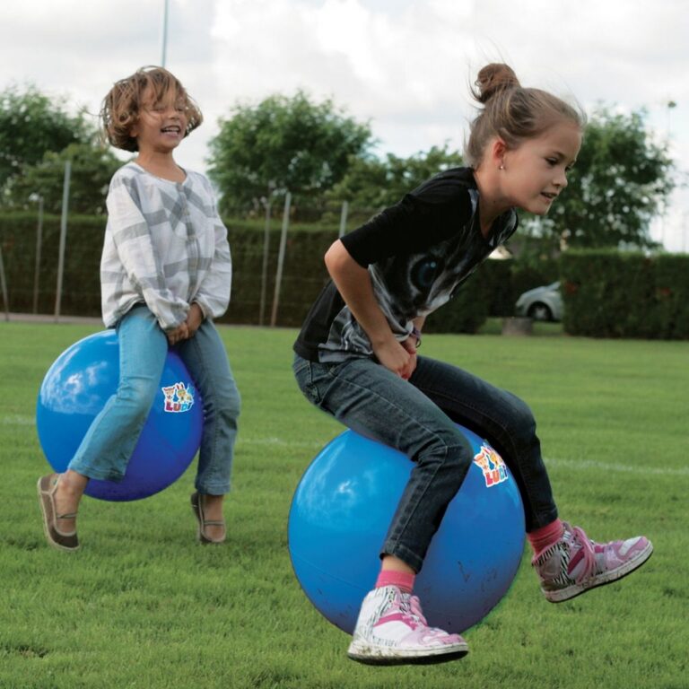 Pallone per saltare blu - Un must per i giochi all'aperto! Seduti sulla palla, i bambini afferrano la grande maniglia e si divertono a saltare come canguri! Adatto a bambini dai 3 anni, questo grande pallone è l'ideale per correre e divertirsi con gli amici! Dimensioni: ø 45 cm - Età: 3+