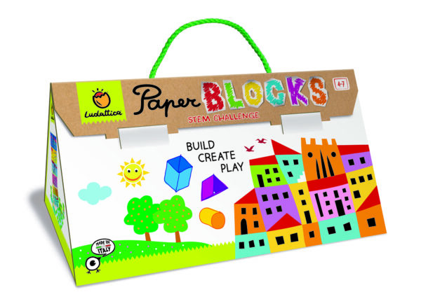 Paper blocks - Il gioco di costruzioni che non c’era! I mattoncini sono in carta resistente, vengono montati dal bambino e gli permettono di dare forma a una grande e variopinta città. I 3 diversi design dei mattoncini consentono di testare diverse possibilità di costruzione e sperimentare i principi scientifici alla base della progettazione ingegneristica. La sfida proposta nel gioco garantisce divertenti pomeriggi di costruzioni in compagnia! 180 elementi per costruzioni in carta da montare - scatola-cesto raccogli giochi - Età: 4+