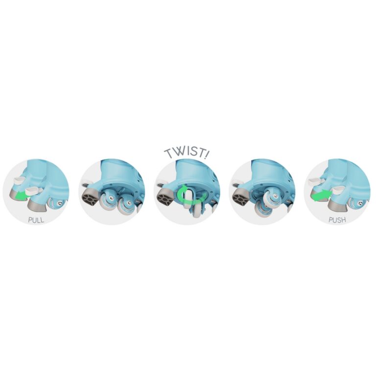 Yvolution Pattini regolabili Twista Roller - Con uno speciale meccanismo a rotazione, i bambini potranno imparare a pattinare nella modalità “facilitata” e convertire successivamente i pattini ad “inline skate”. Misura: 23 - 28