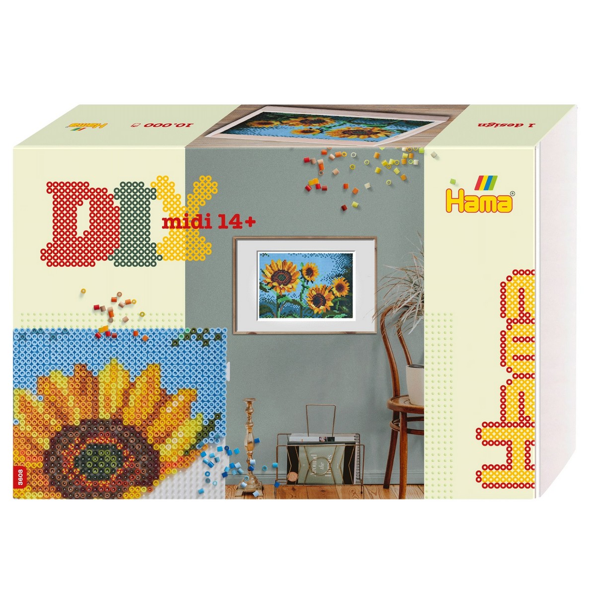 Confezione Regalo HAMA ART con circa 10.000 perle MIDI, 6 basi: quadrata grande n° 234. Foglio con motivo, istruzioni e carta da stiro.