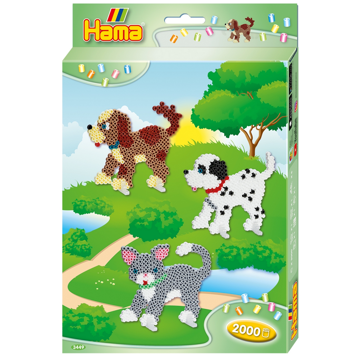 Hama Midi confezione regalo Cani e gatti – ca. 2.000 perline, 2 tavole forate: cane n. 287 e gatto n. 288. 6 supporti per perline. Foglio disegno stampato a colori, istruzioni e carta da stiro.