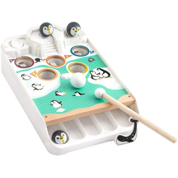 Appoggia i pinguini sopra gli iceberg, colpisci la palla di neve con l'apposito bastoncino e guarda come i pinguini si tuffano felici nella buca prescelta. Il design colorato e giocoso catturerà l'attenzione dei bambini in un istante migliorando l'agilità e la concentrazione. Età consigliata: 3+