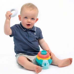 Piramide ad anelli “sempre in piedi” – Koala. Gioco impilabile – Il bambino dovrà impilare i cerchi dal più grande al più piccolo, sviluppando così la motricità fine e lo spirito di osservazione.