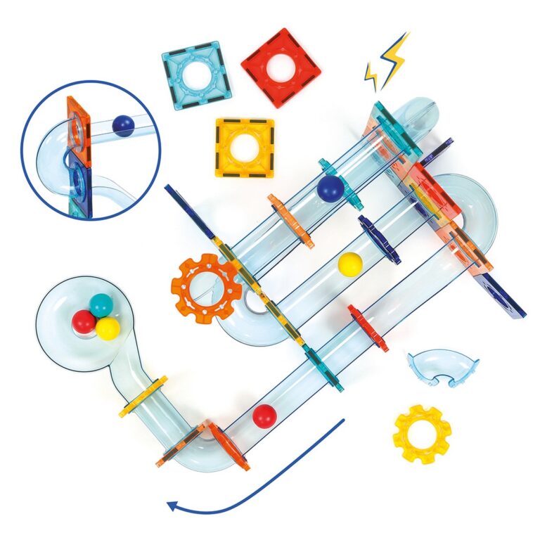 I pezzi si collegano facilmente grazie ai magneti integrati, consentendo infinite combinazioni e sfide di costruzione. Manipolando i pezzi e osservando la biglia muoversi lungo percorsi diversi, i bambini sviluppano motricità fine, coordinazione occhio-mano e comprendono concetti scientifici di base come gravità, velocità, traiettoria e causa-effetto.