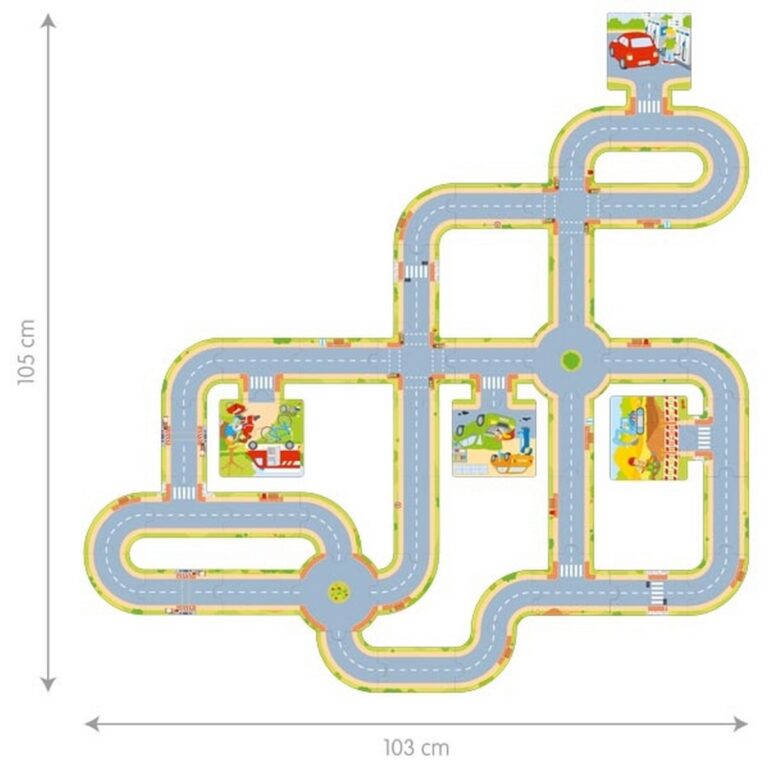 Questa pista da corsa componibile firmata GOKI è pensata per i piccoli amanti delle auto e delle costruzioni. Realizzata in cartoncino resistente e delicato sul pavimento, può essere montata liberamente creando strade dritte, curve, incroci, rotatorie e aree di parcheggio per inventare ogni volta un nuovo circuito di gioco.