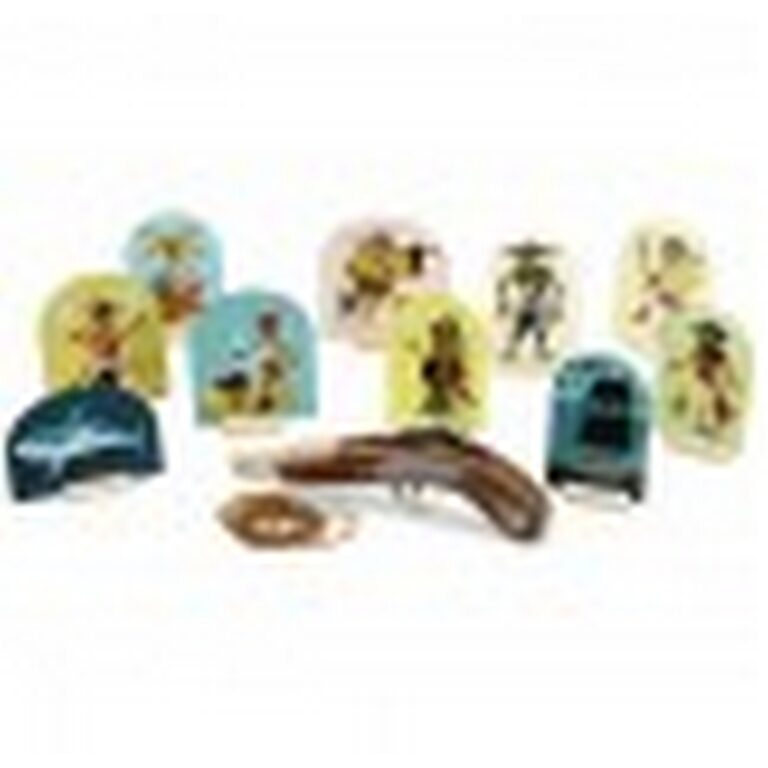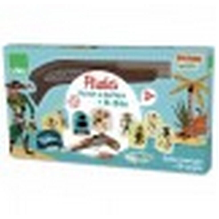 Un giocattolo d'altri tempi. Inserisci gli elastici alla fine della pistola, tira... prendi bene la mira e colpisci uno dei temibili pirati. Età consigliata: 3+