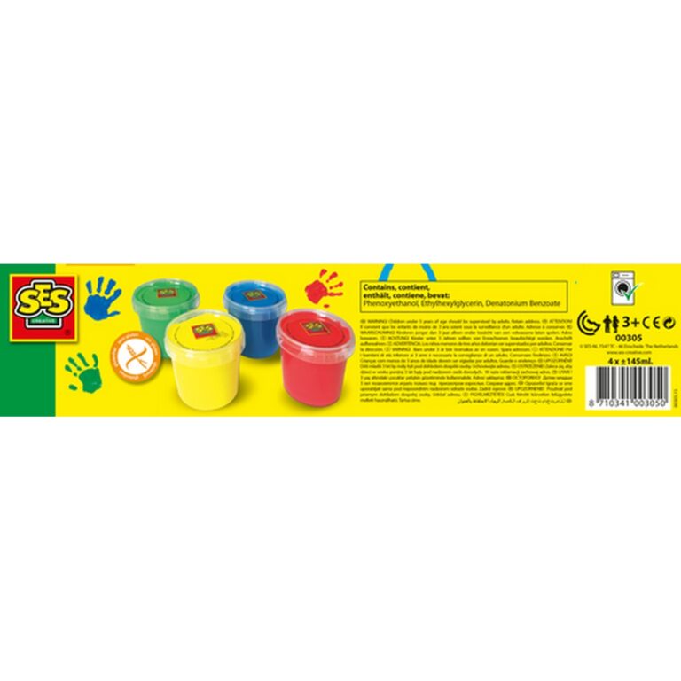 Questo set contiene quattro vasetti di pittura con le dita di alta qualità per stimolare la creatività dei piccoli artisti! La pittura è sicura e non tossica e colori sono attuali e divertenti.