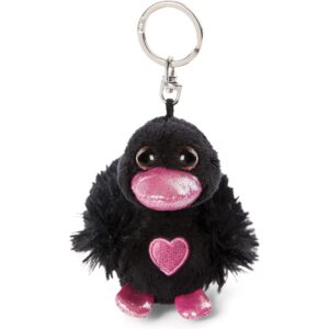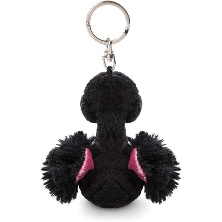 Cigno dell’Amore: Portachiavi NICI. Un tenero cigno nero di peluche alto 8 cm, simbolo di amore e dolcezza. Presenta un becco e dei piedini rosa scintillanti e un cuore rosa ricamato sul petto. Grazie al pratico anello portachiavi in metallo, questo cigno è un piccolo e affettuoso compagno da portare sempre con te su chiavi, zaini o borse.