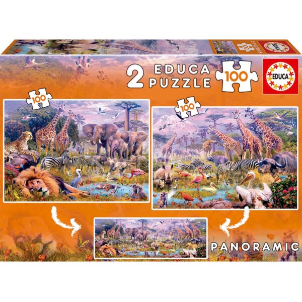 2 Puzzle da 100 pezzi – dimensione: 40×28 cm – Unendoli diventa un puzzle panoramico
