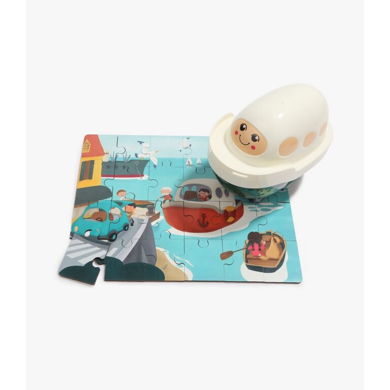 2 giochi in 1 - Il Battello nasconde al suo interno un puzzle di legno formato da 24 pz. Una volta terminato il puzzle il bambino può inventare fantastiche storie e quando si finisce di giocare, basta riaprire il fondo del mezzo per riordinare il tutto senza perdere i pezzi!