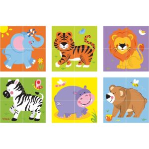 Sei puzzle in uno! Utilizzando 4 solidi blocchi di legno i bambini potranno realizzare 6 diversi puzzle. Ottimo per i più piccoli per godersi la sorpresa e il successo.
