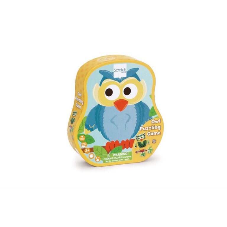 Scegli 1 dei 4 puzzle colorati, lancia il dado e sii il primo a mettere insieme tutti i pezzi del tuo puzzle gufo. Età: 3+