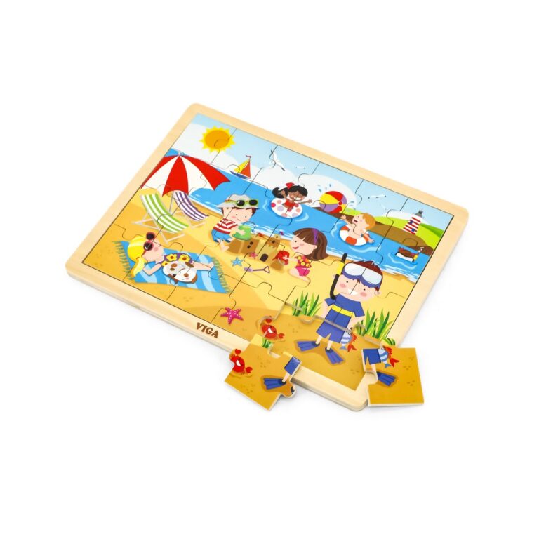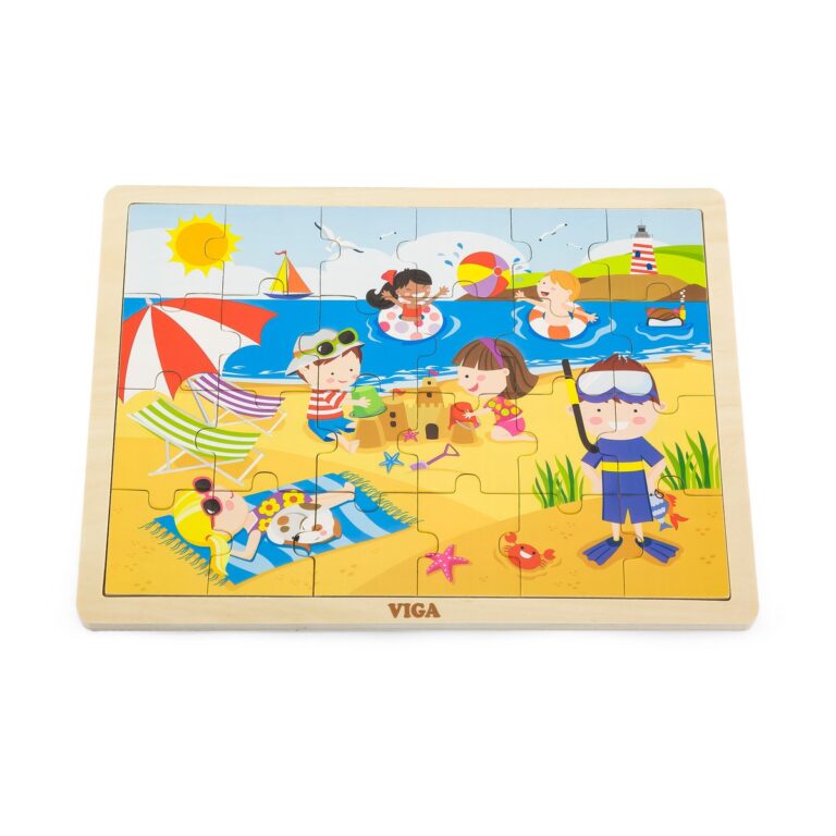Tuffatevi nel divertimento estivo con il Puzzle in Legno Viga Estate, un'attività coinvolgente e stimolante per bambini dai 2 anni in su.