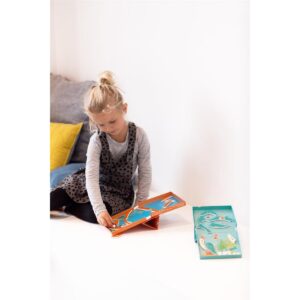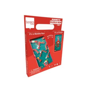 Divertente puzzle magnetico 2 in 1 – Puoi giocare completando il puzzle con i pezzi magnetici, oppure inventarti un simpatico percorso per le biglie. Dimensioni chiuso 18 x 18 cm