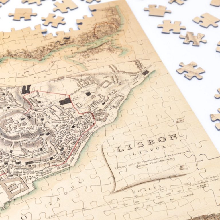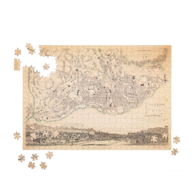 Questo puzzle riproduce una mappa della città di Lisbona, realizzata nel 1833 dall'architetto W. B. Clarke per la Society for the Diffusion of Useful Knowledge (SDUK) e pubblicata in un atlante di Baldwin & Cradock.