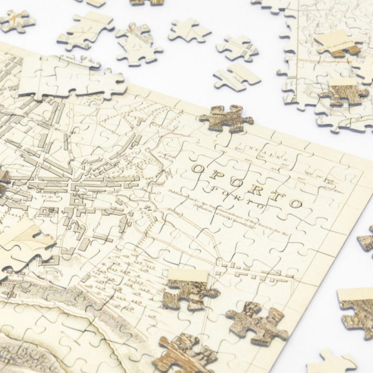 Questo puzzle riproduce una mappa della città di Porto, realizzata nel 1833 dall'architetto W. B. Clarke per la Society for the Diffusion of Useful Knowledge (SDUK) e pubblicata in un atlante di Baldwin & Cradock.