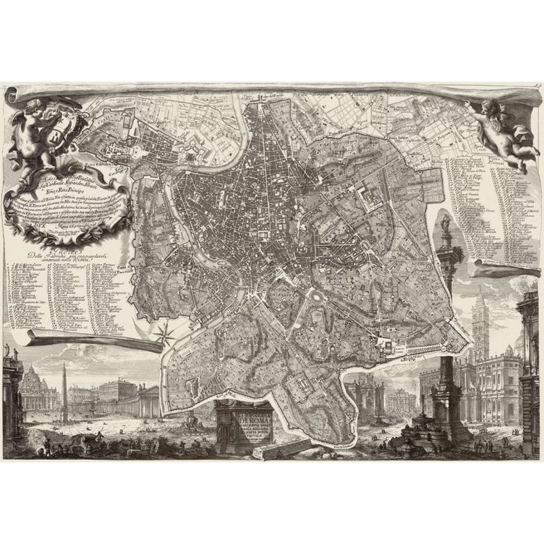 La Nova Topografia di Roma del Nolli è senza dubbio una delle più notevoli mappe di Roma mai realizzate. La carta, di grandi dimensioni, fu progettata da Giovanni Battista Nolli, ingegnere e architetto italiano, nel 1748, in collaborazione con Giovanni Battista Piranesi, e dedicata a Papa Benedetto XIV.