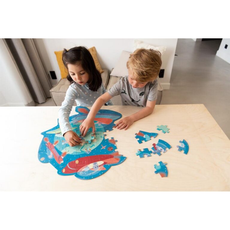 Puzzle Avventura e natura nello Spazio 59 pezzi – Metti insieme tutti i pezzi per creare un’immagine divertente e colorata. Il puzzle ha una forma originale e arriva in una bella scatola di cartone resistente. Perfetto per i bambini che preferiscono una sfida diversa ai puzzle tradizionali.