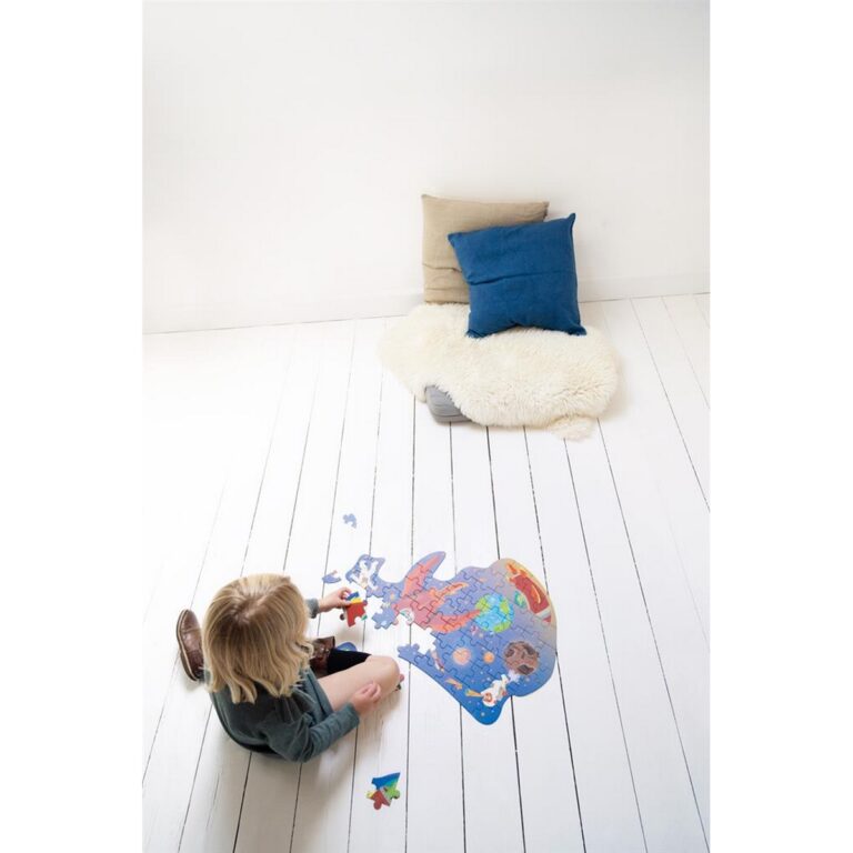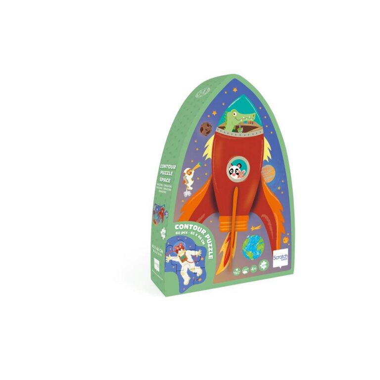 Puzzle Spazio 60 pezzi – Metti insieme tutti i pezzi per creare un’immagine divertente e colorata. Il puzzle ha una forma originale e arriva in una bella scatola di cartone resistente. Perfetto per i bambini che preferiscono una sfida diversa ai puzzle tradizionali. Carta riciclata e inchiostro a base di soia.