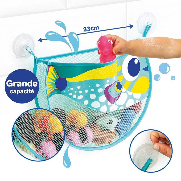 Il Retino Porta Giochi da Bagno LUDI a forma di Pesce XXL è la soluzione pratica e divertente per tenere in ordine tutti i giochi del bagnetto. Grazie alla sua grande capacità e al design colorato a forma di pesce, questo organizer rende il bagno più ordinato e allegro.