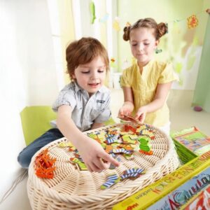 Il gioco stimola l'osservazione, la concentrazione e la reattività, con regole semplici per un divertimento immediato. Include anche suggerimenti per lo sviluppo del linguaggio.