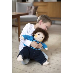 Original Emil - Bambola in Stoffa - Bambola Empatica. Ciao sono Emil! Mi piace la compagnia di ragazzi e ragazze dai 3 anni in su. Posso anche essere lavato a 30 ° C (basso calore in asciugatrice). Sono una buona terapia per i nonni e offro abbracci grandi, caldi e confortanti! Non vedo l'ora di incontrarti ed esplorare insieme empatia, pazienza e cura del bambino! Dimensione : 50 cm - Peso : 1 kg circa