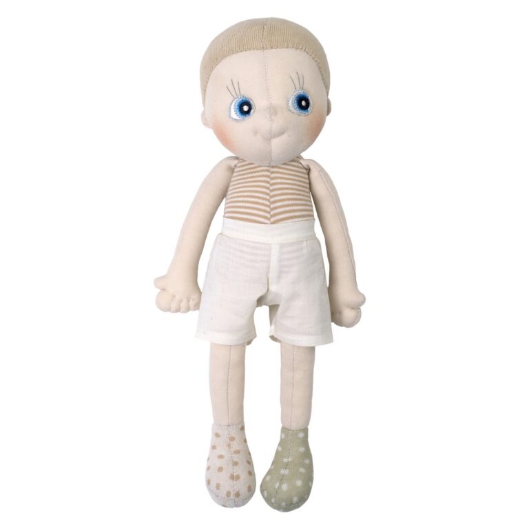 EcoBuds Aspen - Bambola di stoffa - Bambola Empatica. Una dolcissima bambola interamente realizzata a mano. Le lunghe braccia sono perfette per morbidi abbracci. Ideale per i neonati e amata anche dai bimbi più grandi. E' realizzata con cotone biologico. Dimensione: 35 cm - Età: +0m