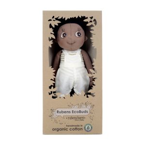 EcoBuds Fern - Bambola di stoffa - Bambola Empatica. Una dolcissima bambola interamente realizzata a mano. Le lunghe braccia sono perfette per morbidi abbracci. Ideale per i neonati e amata anche dai bimbi più grandi. E' realizzata con cotone biologico. Dimensione: 35 cm - Età: +0m