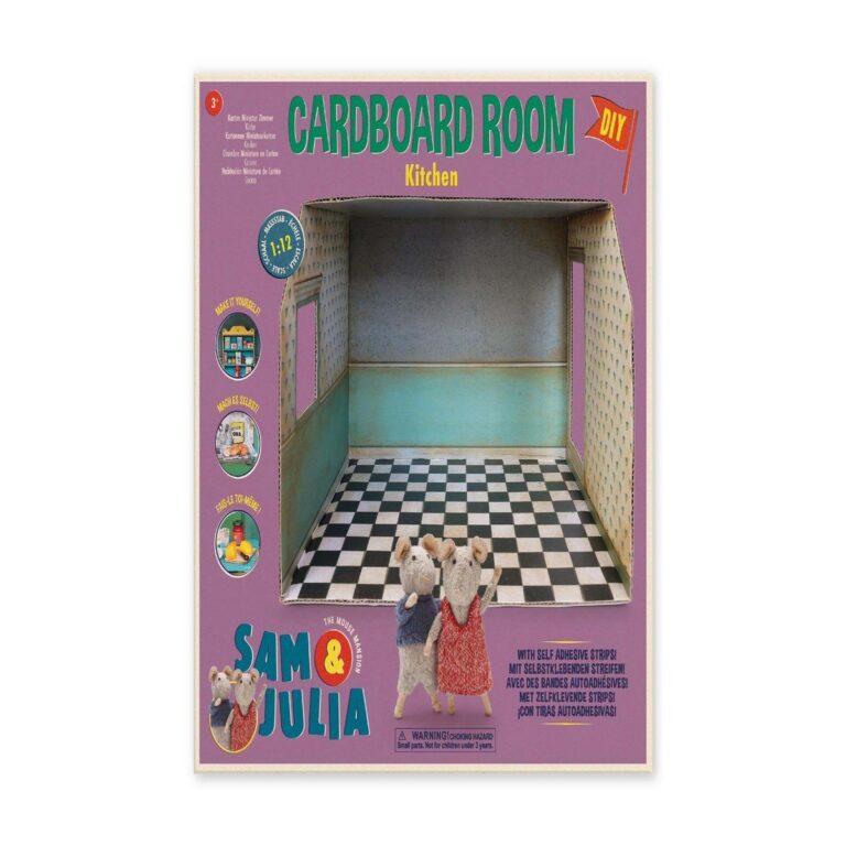 Graziosa stanza in cartone stampato (26 x 20 x 25 cm, scala 1:12) con nastro biadesivo per un facile montaggio. Perfetta per creare scenari per le avventure di Sam & Julia. Mobili e miniature venduti separatamente. Adatto dai 3 anni.
