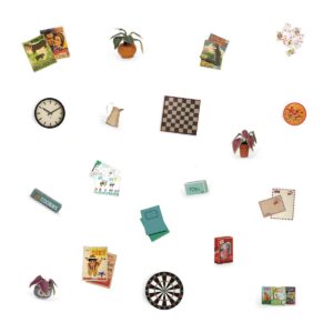 Crea miniature di carta per la Mouse Mansion con questo set di fustelle. Arreda soggiorno, camera, cucina, bagno, negozio e aula in scala 1:12, realizzando accessori, orologi, scatole, lampade e persino dentifricio. Adatto dai 6 anni.
