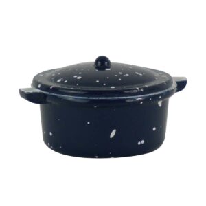 - Una curata riproduzione in miniatura di una casseruola in metallo con coperchio.