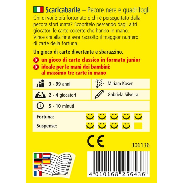 Contenuto: 18 carte della fortuna, 18 carte della pecora sfortunata, 1 istruzioni di gioco