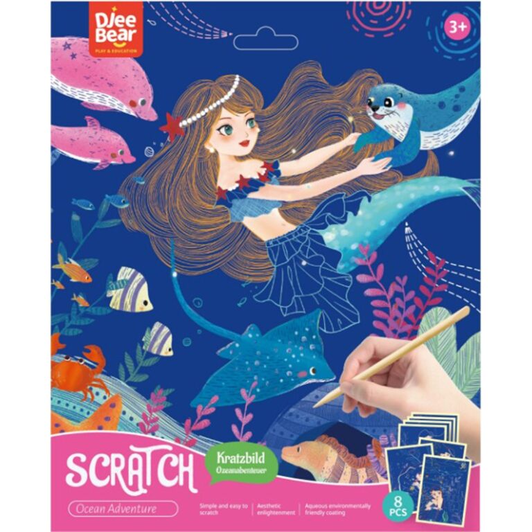 Libera la creatività dei bambini con i Djee Bear Scratch Book, un’attività artistica coinvolgente e senza disordine! Ogni set include 8 schede scratch a colori e 1 stilo in legno: basta grattare la superficie nera con lo stilo per rivelare illustrazioni vivaci e ricche di dettagli nascosti.
