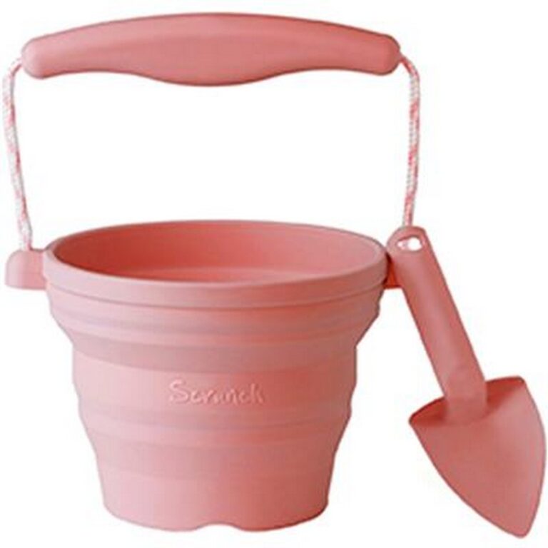 Set composto da secchiello/vasetto in silicone con manico in corda più paletta - Dimensioni secchiello: 12,5x12,5x8,5cm - Età: 1+ I prodotti Scrunch, possono essere schiacciati, piegati e arrotolati senza perdere la forma. Le possibilità sono infinite: puoi trasportare l'acqua, costruire castelli di sabbia, raccogliere frutta e verdura, lavare l'auto o la bicicletta e così via. Oppure potresti usare i secchielli all'interno come vasi per piante, erbe e fiori o per riporre penne e matite. I secchi, gli annaffiatoi e gli stampi da spiaggia in splendidi colori delicati sono realizzati con siliconi flessibili per uso alimentare. Questo li rende molto morbidi e flessibili, ma incredibilmente resistenti e durevoli. Puoi lasciare gli Scrunch fuori al freddo senza problemi, perché il silicone è insensibile alle temperature estreme. Inoltre, il silicone è ecologico, non tossico, riciclabile e facile da pulire.