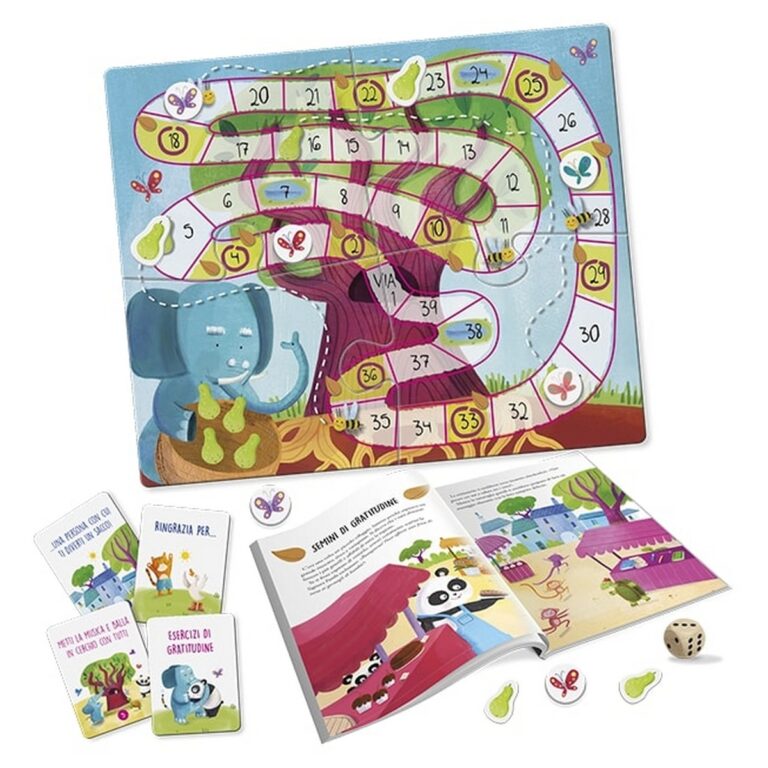 Semini di gratitudine - Gioco Educativo Mindfulness. La gratitudine è uno dei cardini delle pratiche mindfulness ed è certamente anche un saldo principio educativo. Imparare a dire «grazie» con consapevolezza ed empatia è un potente strumento che genera nei bambini gioia e benessere. Con questo libro gioco si parla ai bambini di gratitudine attraverso una delicata narrazione, che li farà soffermare sulle loro risorse e su ciò che di bello e positivo li circonda. Il gioco di percorso li vedrà protagonisti con attività e gesti concreti per imparare a riconoscere ed esprimere gratitudine tramite il linguaggio verbale, corporeo, creativo ed espressivo. Contenuto: Libro gioco in scatola 32 pagine, gioco di percorso con gettoni, carte missione e dado in legno. Età: 3+