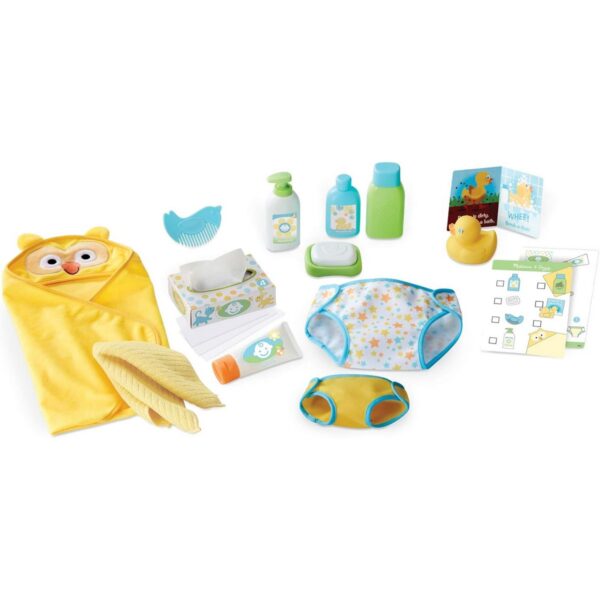 Il set Melissa & Doug Mine to Love è perfetto per i piccoli genitori che vogliono prendersi cura dei loro amati giocattoli. Con 19 accessori realistici, come l'accappatoio a forma di gufo, la saponetta e il pannolino, i bambini potranno simulare il bagnetto, il cambio e tutte le coccole di cui un bambino ha bisogno.