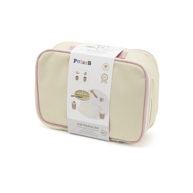 Il Set pappa per bambole in legno di Viga – linea PolarB è perfetto per trasformare il momento del pasto in un’occasione di gioco dolce e coinvolgente. Il kit include tutto il necessario per prendersi cura della bambola: un bavaglino in tessuto, una forchettina, un cucchiaio, un piatto, un biberon e una bottiglietta d’acqua. Tutti gli accessori sono realizzati con cura e si ripongono facilmente nella borsa da viaggio coordinata, pronta da portare ovunque.