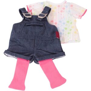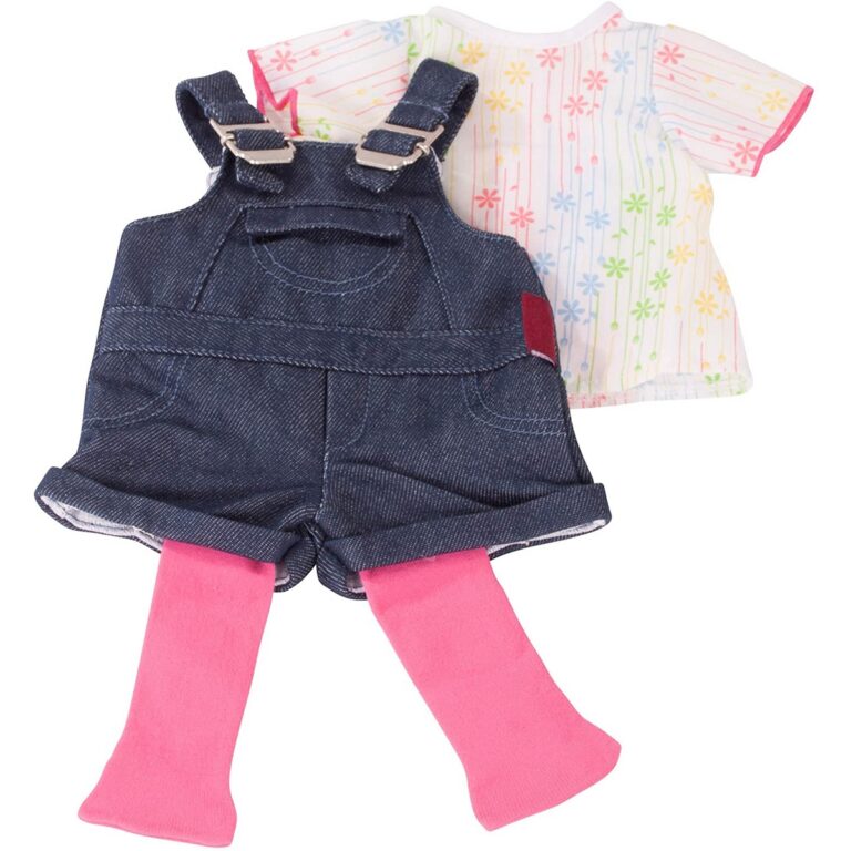 Con questo look la tua bambola sarà casual e alla moda. Il set include: salopeete in jeans, maglietta e collant. Ideale per bambole dimensione: 45-50 cm