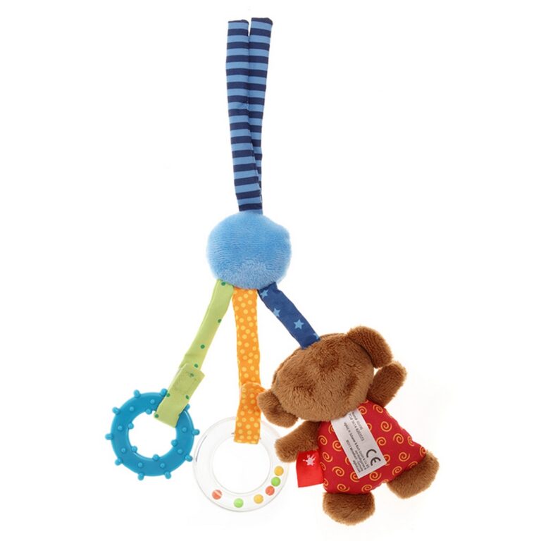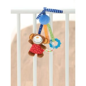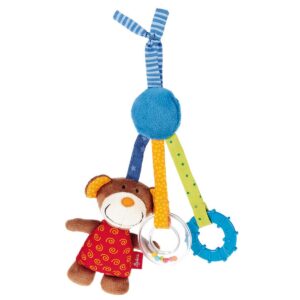Uno, due, tre: ho tutto con me: il mio morbido peluche con uno squeaker, la piccola presa a sonagli e il massaggiagengive. Il bellissimo sonaglietto per giocare e scoprire mantiene i più piccoli di buon umore e in movimento.
