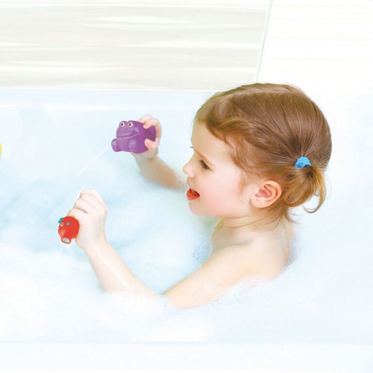 Spruzzini - 4 animaletti della fattoria per divertirsi a sguazzare durante il bagnetto! Gli spruzzini LUDI consentono ai bambini di sviluppare le loro capacità motorie e la loro immaginazione. Il bagno diventa un vero momento di relax e piacere! Dimensione: circa 7 cm - Età: +10M