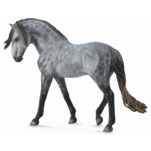Horse Country – Scala: 1:12 – Stallone Andaluso Grigio Scuro Pezzato – Dimensioni: 26,5 x 17 cm – Descrizione: Riproduzione di uno stallone Andaluso grigio scuro pezzato, una razza di cavalli elegante e armoniosa originaria della Spagna. Gli Andalusi sono noti per i loro movimenti estesi, elevati e cadenzati, caratterizzati da equilibrio e fluidità. Apprezzati per la bellezza, la muscolatura proporzionata e il portamento fiero, sono ideali come modello realistico per collezionisti e appassionati di cavalli.