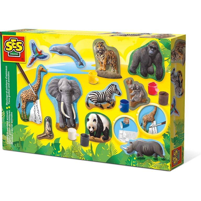 Con questo set di SES si possono creare 11 animali di gesso. Versa il gesso nello stampo, lascia asciugare e dipingi l'animale realizzato come più ti piace. Puoi facilmente creare i tuoi animali esotici: un elefante, un delfino, una zebra, una tigre, un gorilla, un pappagallo, un rinoceronte, un panda, un koala, una giraffa e un suricato. È divertente, e il risultato è fantastico! Età consigliata: 5+