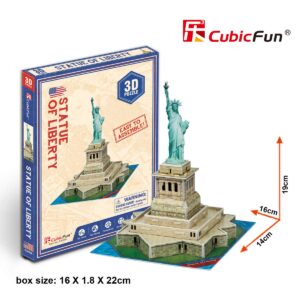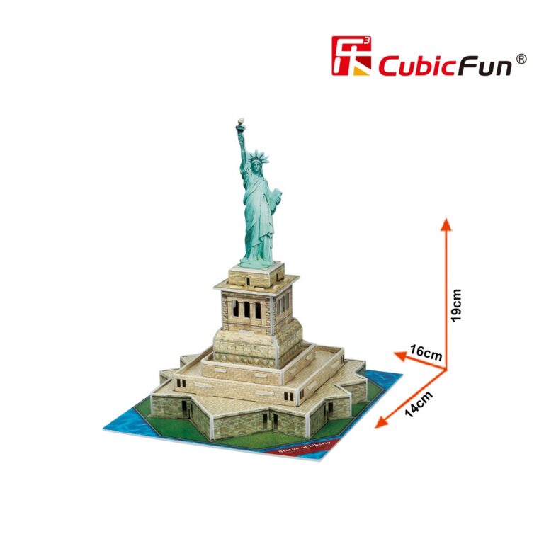 Puzzle 3D divertente e stimolante della Statua della Libertà a New York. Livello di difficoltà: 2 – Numero di pezzi: 38 – Tempo di costruzione: 50 a 60 minuti – Dimensione : 14x16x19 cm