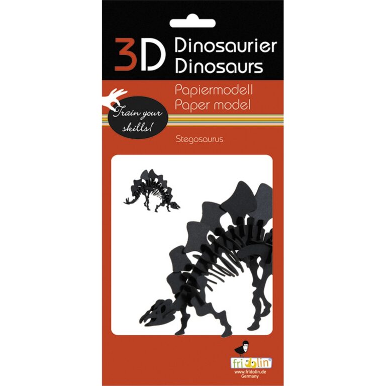 Modello di carta 3D – Stegosauro. Dimensioni (l/a/p): ca. 17,5 x 10,5 x 5 cm (montato)