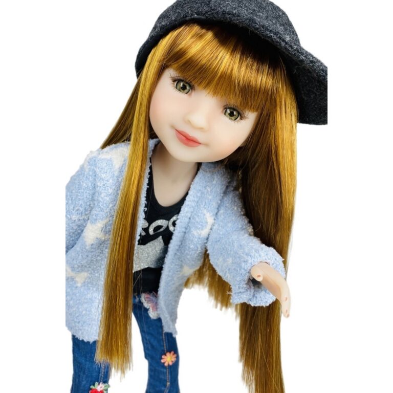 Bambola Stella Ruby Red Fashion Friends - Stella è proprio una vera rockstar e vuole usare la sua immaginazione e creatività per portare il suo stile musicale nel mondo.. Stella ha dei favolosi capelli rossi con riflessi dorati e grandi e biricchini occhi celesti. Indossa la sua t-shirt preferita "Rock", un maglione azzurro con stelle bianche, jeans ricamati e scarpe brillantate. Il suo cappello con pom pom è di gran moda! Bambola alta circa 37 cm con 9 articolazioni, corpo in vinile di alta qualità. Età: 6+
