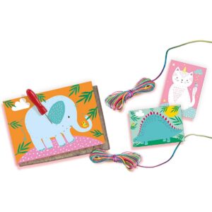 Impara la string art facilmente. Usa la penna per forare il tappetino in feltro e usa la tua creatività con l’ago sicuro e il filo multicolore. Nella string art, decidi tu dove va il filo, così non potrai sbagliare! Due attività in una: forare e string art! Contenuto della scatola: 4 schede prestampate, penna per forare, tappetino in feltro, filo multicolore, ago di plastica,istruzioni. Età: 3+